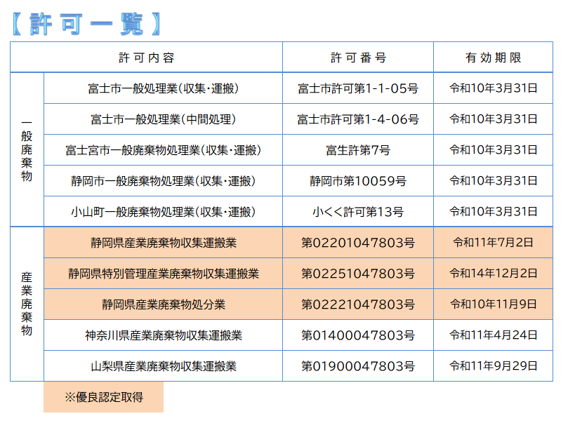 一般廃棄物処理業及び産業廃棄物収集運搬業、中間処理業